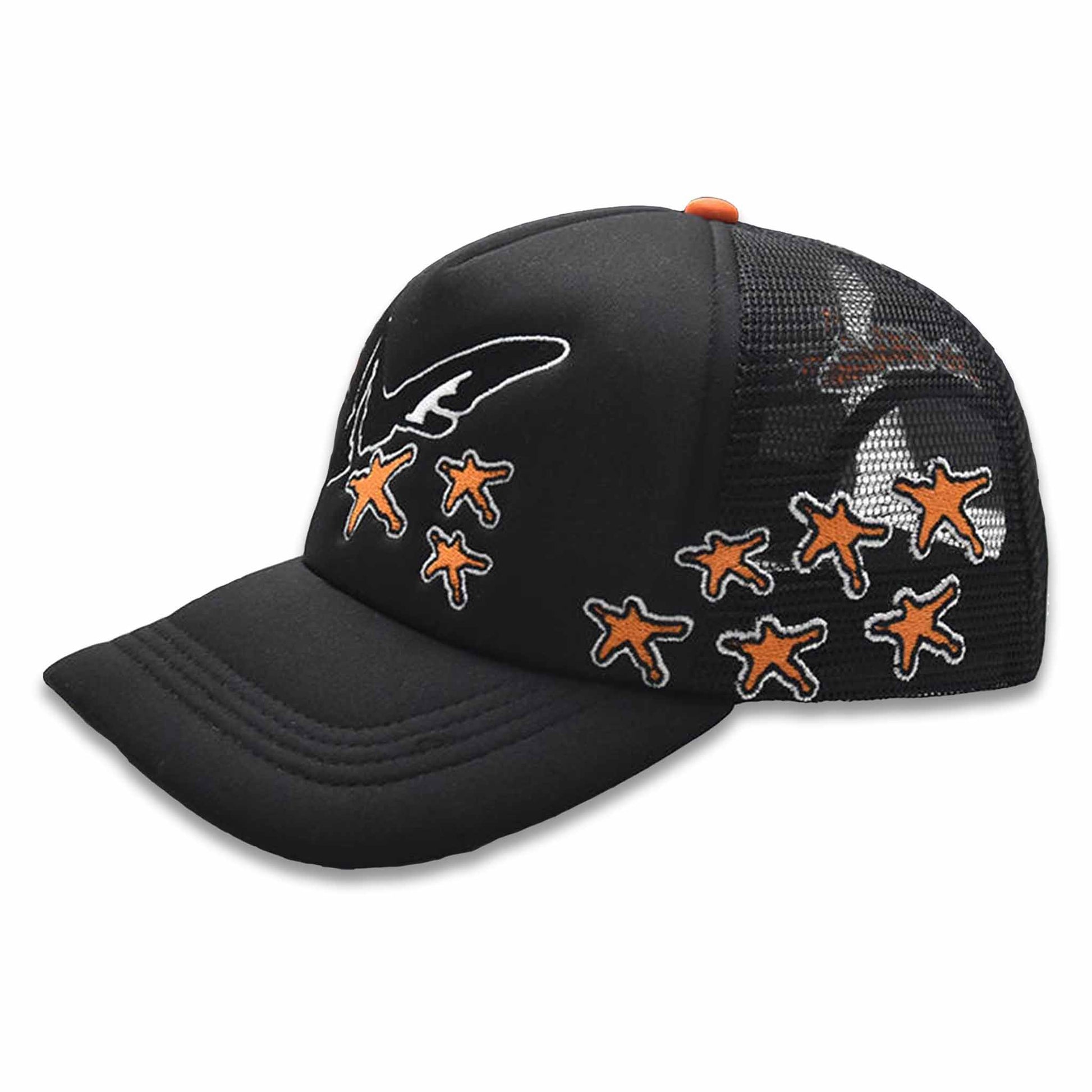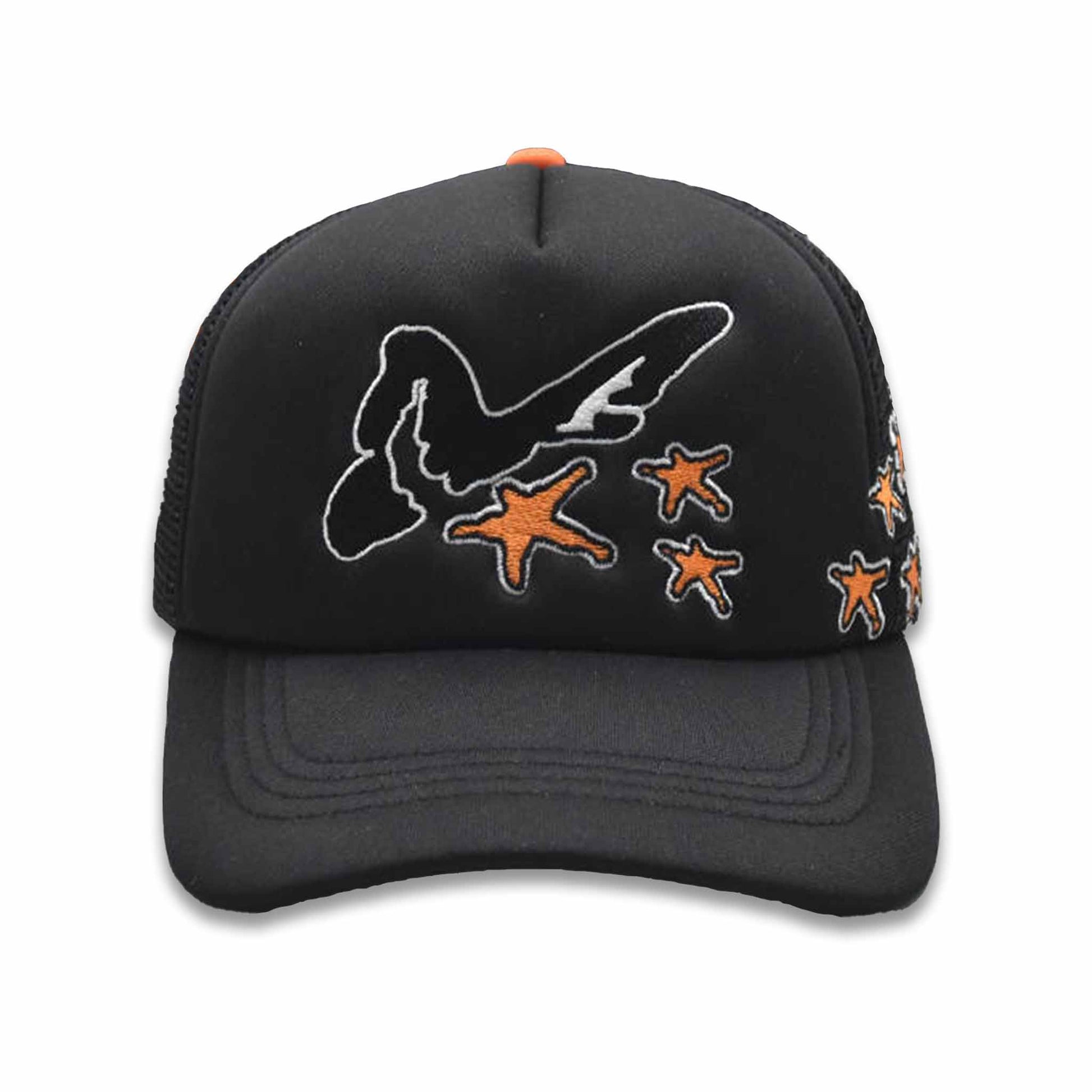 Embrace the Chaos with this custom, cut & sew Butterfly Effect trucker hat.